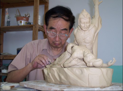德化瓷烧制技艺(工艺美术大师邱双炯正在创作作品《霸王别姬》)