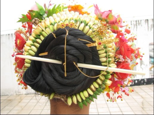 我国的发式、发饰与服饰已有数千年的历史,“蟳埔女”头饰文化的形成,经历了东晋以来的孕育期,宋元时期的转型期,清未民初的成熟期,以及新中国成立至现在的兴衰更迭的曲折发展期,但不管怎样,都能因特定的劳动形式和生活环境,由母教女,婆传媳,世代相传。对于蟳埔女的服饰渊源,有多种说法。有人认为,“簪花围”是宋元时期遗留下来的阿拉伯人风俗;还有人指出,蟳埔女的风俗是原始人类的遗传。俗称“簪花围” 的“蟳埔女”头饰各种鲜花则随季节而变化,花团锦蔟,美丽芬芳,既反映“海上丝绸之路与蟳埔民俗文化”的因缘关系,也是民俗文化的研究范畴。